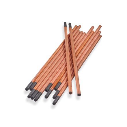 Угольные электроды круглого сечения представляют собой графитовые/угольные стержни, снаружи покрытые тонким слоем меди (омедненные). С их помощью осуществляют строжку и резку металла, делают отверстия и удаляют дефекты, возникающие при литье, производят сварку алюминиевой и медной проводки при прокладке электросетей. Угольные электроды не засоряют металл шва, отличается стабильным горением и малым брызгообразованием.