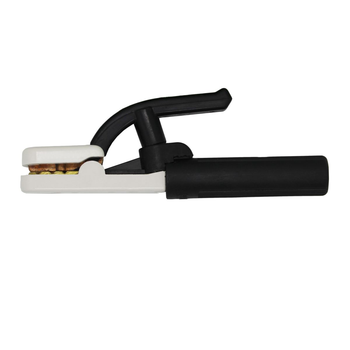 Нижняя латунная губка и верхняя стальная значительно продлевают срок эксплуатации электрододер-жателя, в отличии от моделей с полностью стальными губками. | В конструкции использована усиленная пружина для лучшей фиксации сварочного электрода. | Длинное латунное основание позволяет работать на больших токах с повышенным коэффициен-том полезной нагрузки. |