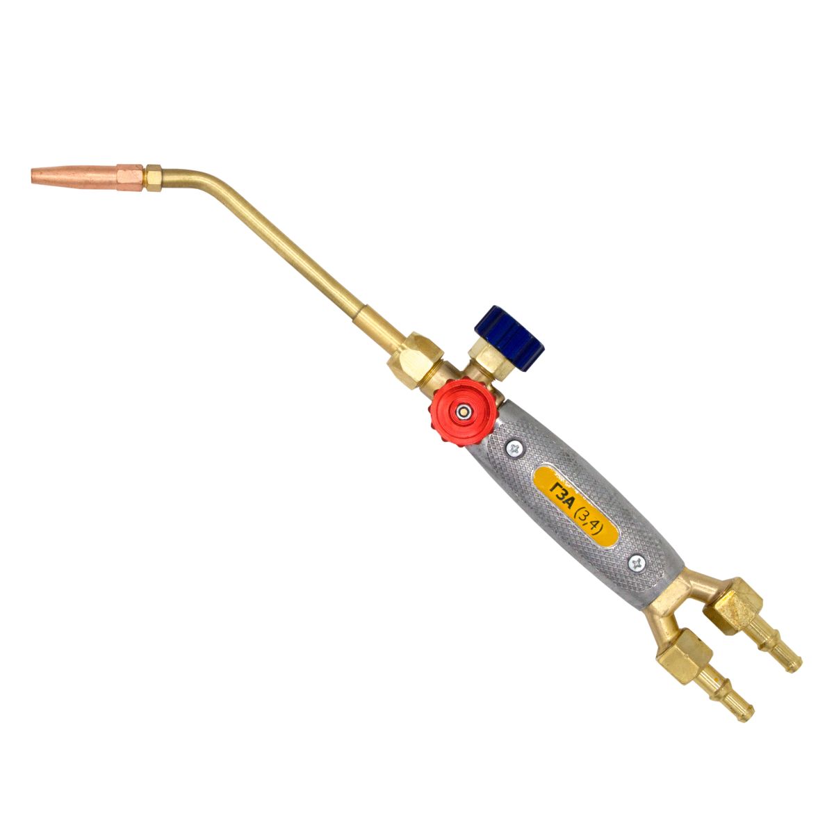 Горелка ацетиленовая Г3А (3,4) (Optima) газопламенная предназначена для ручных процессов ацетилено-кислородной сварки, пайки, нагрева и других видов газопламенной обработки металлов. Основные параметры горелки соответствуют требованиям ГОСТ 12.2.008 и ГОСТ 1077.