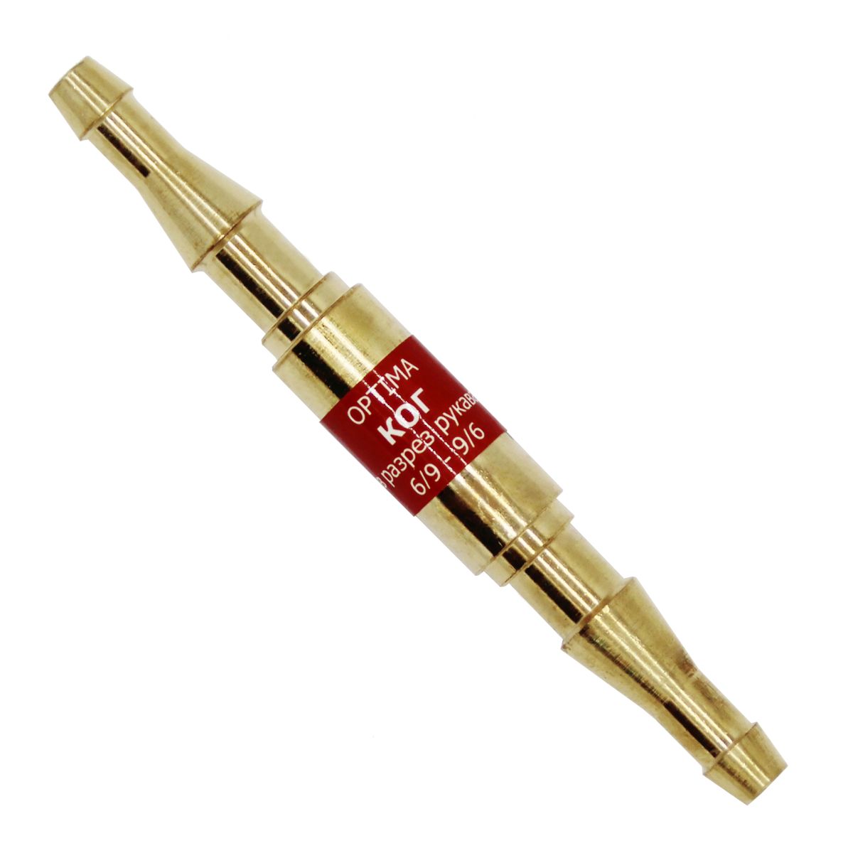 Клапан обратного удара КОГ (в разрез рукава) (Optima) предназначен для предотвращения обратного удара в газовых системах, где используется кислород или горючий газ. Включает предохранительные функции пламегасителя для защиты от обратного удара пламени и обратный клапан, который предотвращает поток газа в обратном направлении. Устанавливается в разрыв рукава.