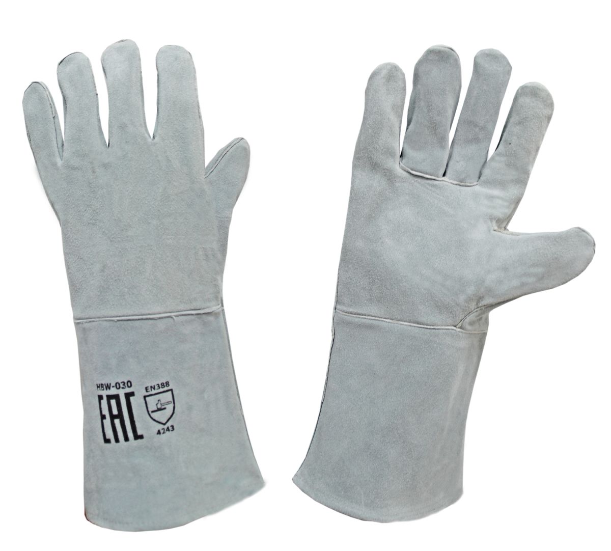 Краги изготовлены из высококачественной расщепленной телячьей кожи. Рабочая часть перчатки изготовлена из цельного куска спилка (без шва).