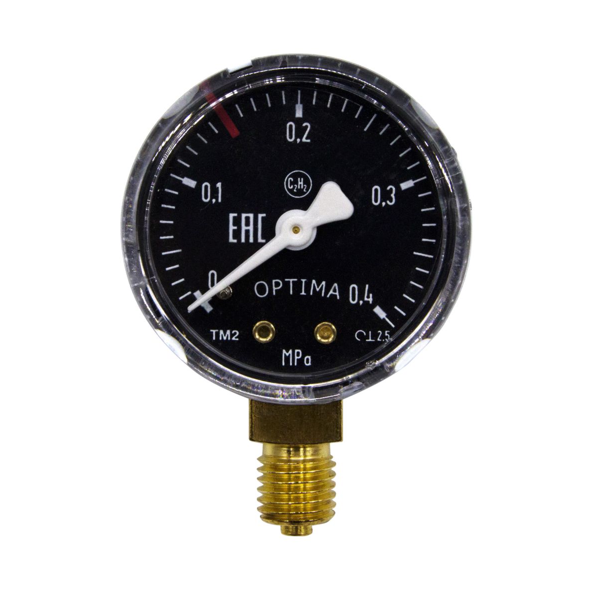 Манометр ацетиленовый 0,4 мПа (Optima) - измерительный прибор избыточного давления предназначен для газообразных и жидких некристаллизующихся и неагрессивных сред. Измеряет давление до 4 атмосфер.